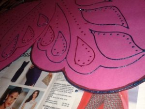 Utána a nagyobb mintarészeket átrajzoltam papírra és kivágtam, így mintákat készítettem magamnak, hiszen még 3- szor kellett pontosan ugyanezt a fél szárnyat elkészítenem.