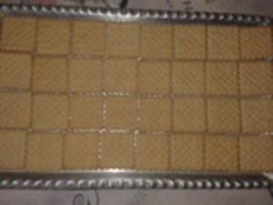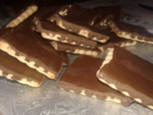 A kocka alakú háztartási keksz azért előnyös mert ilyen szépen, össze tudod rakni egy tálcán, így a csokimáz nem fog lefolyni a tálcára.