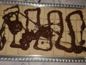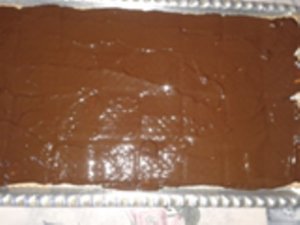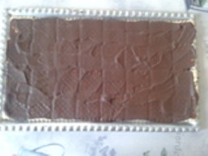 Majd szépen egy késsel simítsuk el a csokimázat a kekszek tetején.