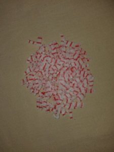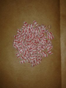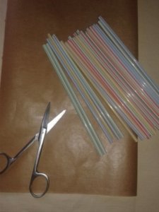 3-4 db piros szívószálat ollóval apróra vágunk: