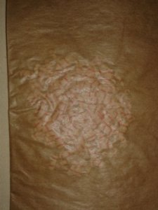 Látszik, hogy nem lett tökéletes elsőre, vannak benne pici lyukak. Több szívószállal is dolgozhattunk volna. Mivel mi össze fogjuk a két felet ragasztani nem probléma. 3 rész fonalból: