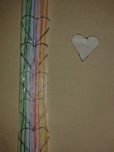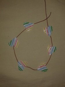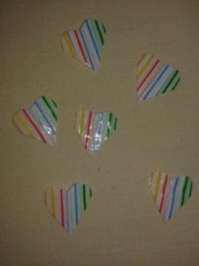 Ebből készülhetne karkötő vagy egy kis ollós igazítással szuper könyvjelző is, mi ebből is szívecskéket vágtunk ki.