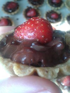 A tetejére itt is friss félbevágott epret tettem, és egy kis olvasztott csokival is meglocsoltam.