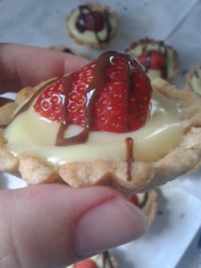A kosárka tésztáját nagyon egyszerű és könnyű elkészíteni, kezdőknek is bátran ajánlom. A formába nyomkodást pedig a gyerekek is élvezik azért az ő munkájukat érdemes sütés előtt ellenőrizni. 🙂 A Nagymamám diós habbal készíti, de jól variálható szinte bármilyen krémmel, pudinggal tölthető a gyümölcsökről már nem is beszélve. A tésztája pedig szintén variálható már ami a lisztet illeti. Én fele fele arányban készítettem teljes kiőrlésű búzaliszttel -de nyugodtan meg lehet próbálni kizárólagosan is vele.