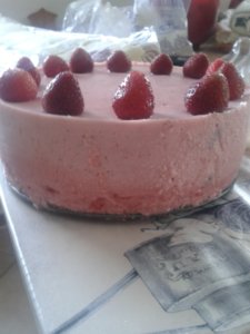 És ráöntjük a krémet. Ilyenkor a tetejére tett eper még nagy valószínűséggel elsüllyed, így érdemes vele fél órát várni. A hűtőben 2-3 óra alatt tökéletesre dermed.