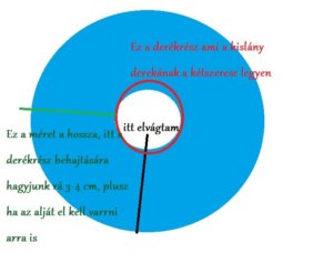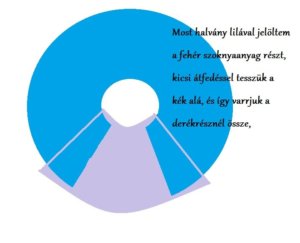 Szóval ha ez megvan akkor mutatom a fehér részét a szoknyának hogyan kerül a kék alá. A fehér anyagból elég egy félkörnyit kiszabni.