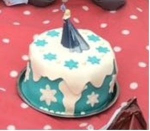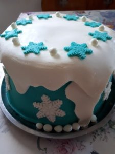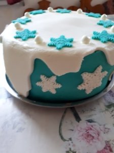 A díszítés szerintem mindenki vérmérsékletére bízható, nekünk mivel még egy Elza figura került a torta tetejére ennyi elegendő is volt. És készen is vagyunk. Az Ünnepelt elégedett volt, a torta túlélte a szállítást. És legközelebb előtte itthon lövök pár képet a teljes díszben lévő tortáról.