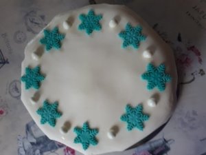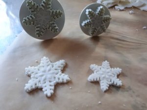 A maradék fehérből és kékből hópehelymintákat szúrtam ki sütikiszúróval.