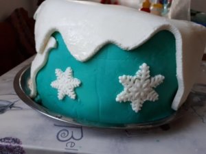 Majd a tetejéhez a fehéret is kinyújtjuk és szépen körbevágjuk, mintha a hó lepte volna be és kicsit olvadna a szélén.