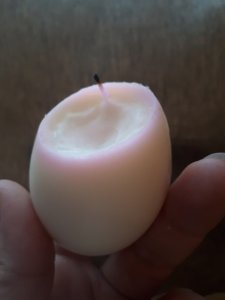 Amire szükség lesz az a tojásforma, ebben az esetben egy sima tojás héja, amit lehetőleg úgy törtetek meg, hogy a tetején legyen a pici lyuk. Ez azért fontos mert ebbe fogjuk önteni az olvadt viaszt. Érdemes előtte pár nappal ha rántottát vagy egyéb ételt készítettek félretenni pár tojáshéjat átöblítve, kiszárítva. Mutatom mire gondoltam, igaz itt már a fehérek viaszát betöltöttük de azért a tojás feltörésénél segíthet ez a fotó.
