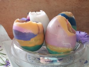 Ők a tavalyi csodás fehér gyertyáink, itt csak a tetejüket színeztük picit, de idén arra gondoltunk igazi szivárványos gyertyákat fogunk készíteni.