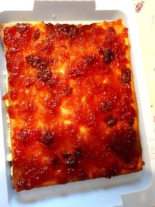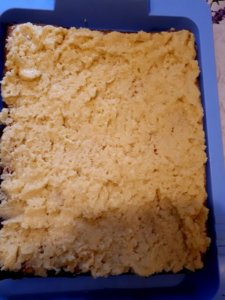 Aztán jöhet a következő tészta, és egy réteg lekvár. Ne sajnáljuk kenjük meg jó vastagon.