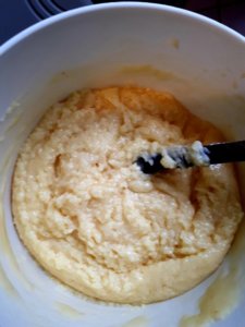 Utána elkészítjük a vaníliás krémet. A tejet a búzadarával elkezdjük főzni, a pudingport kikeverjük a cukor egy részével és egy kis tejjel. A cukor többi részét a búzadarához öntjük. Amikor már kezd szépen megfőni de még folyós beleöntjük a pudingport és folyamatos kevergetés közben addig főzzük amíg be nem sűrűsödik. Levesszük a tűzről és várjuk, hogy meghűljön, amikor már nem forró belekeverjük a margarint.